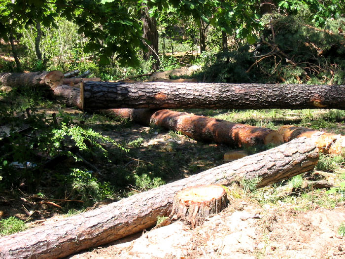 | (Вырубленная просека для коллектора отвода сточных вод; 7 мая 2006 г.) |