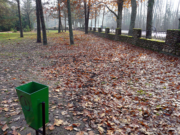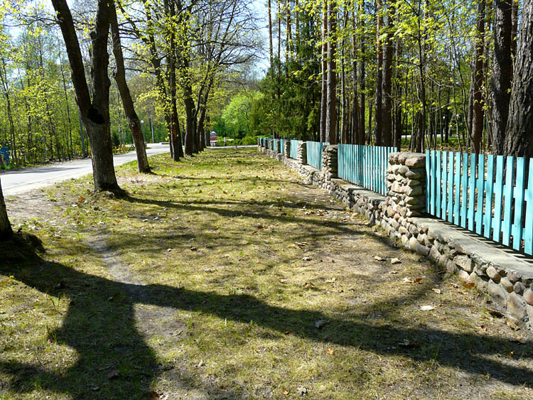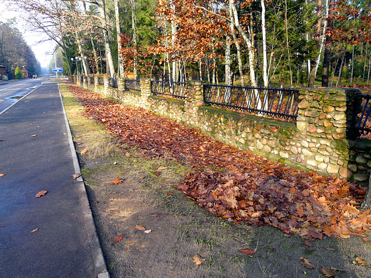 | (Приготовленные к вывозу листья за забором; 3 мая 2009 г.) |