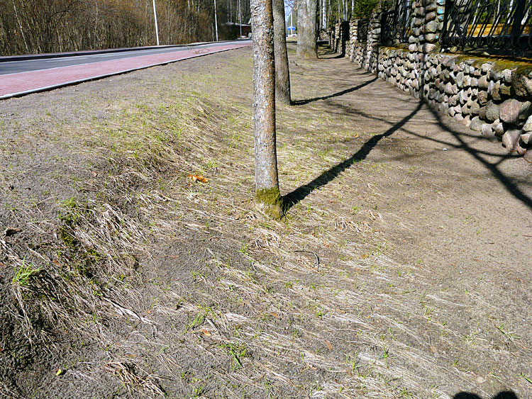 | (Убранные листья вдоль дороги весной 2009 года; 3 мая 2009 г.) | ||