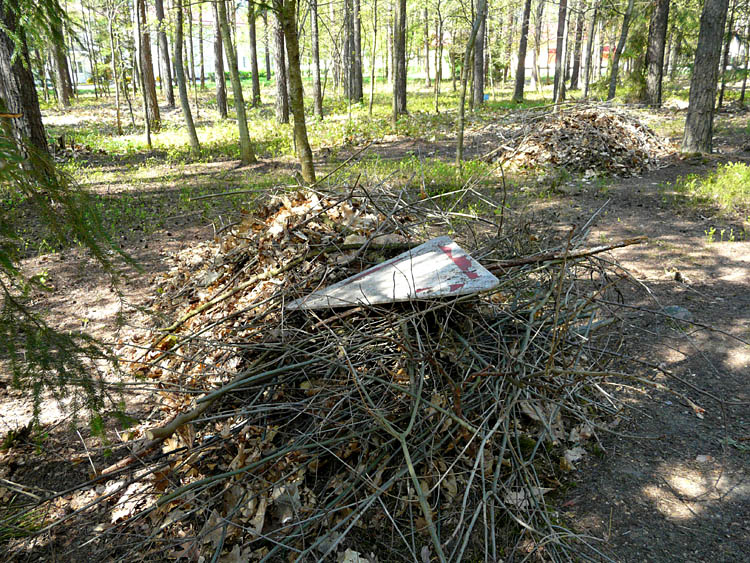 | (Убранные листья вдоль дороги весной 2010 года; 4 апреля 2010 г.) | |