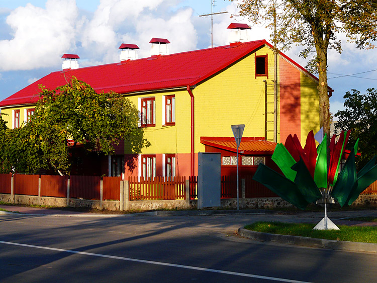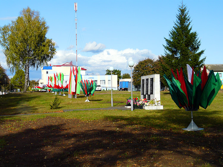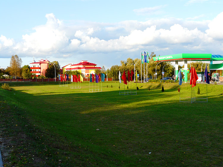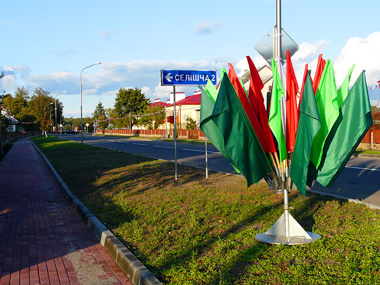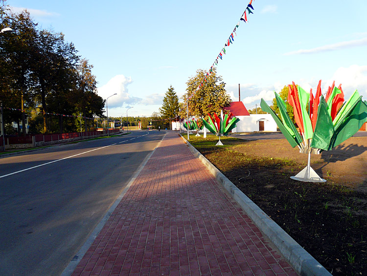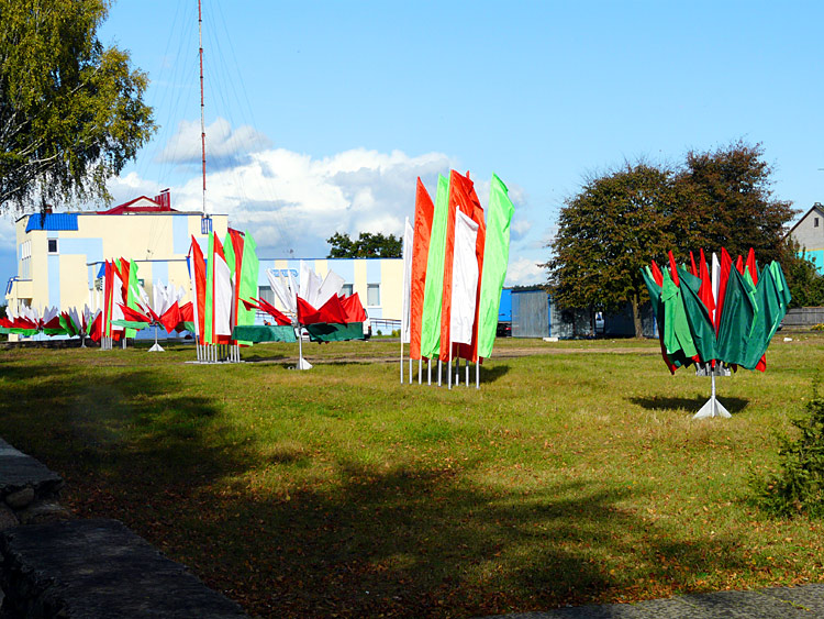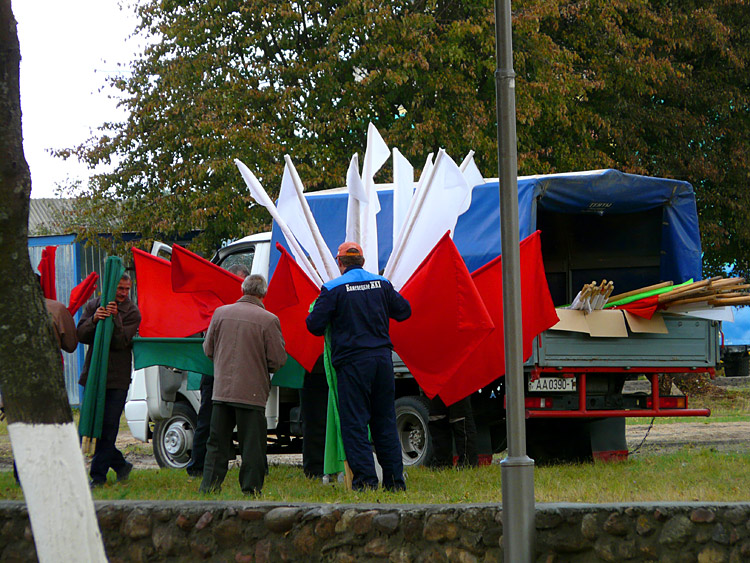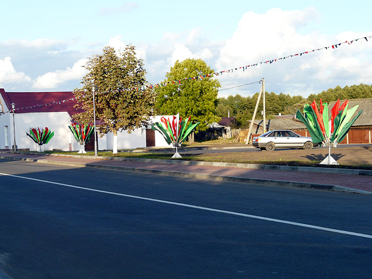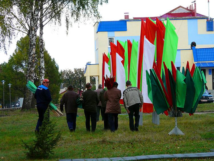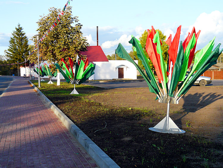 | (Установленные цветные флаги в центре деревни, 2 октября 2009 г.) |