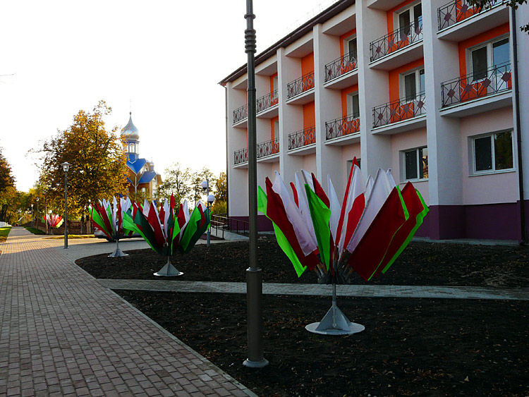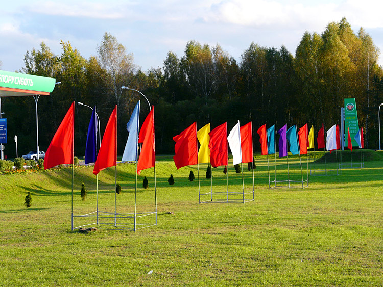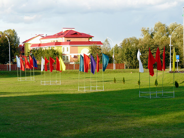 | (Цветные флаги возле гостиницы №2, 2 октября 2009 г.) |