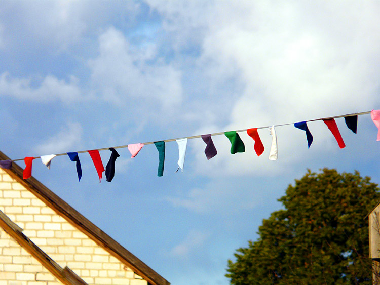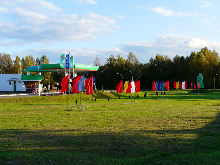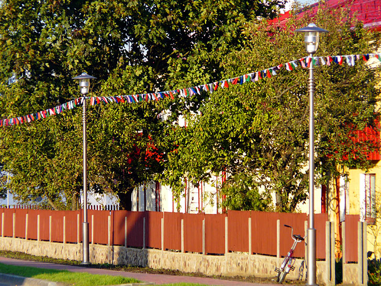 | (Цветные флаги и флажки вдоль улицы в конце деревни, 2 октября 2009 г.) |