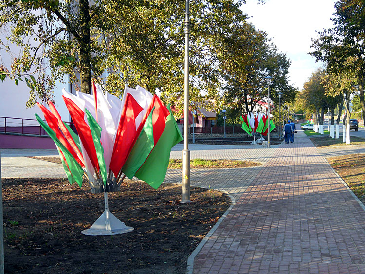| (Цветные флаги вдоль улицы, 2 октября 2009 г.) |
