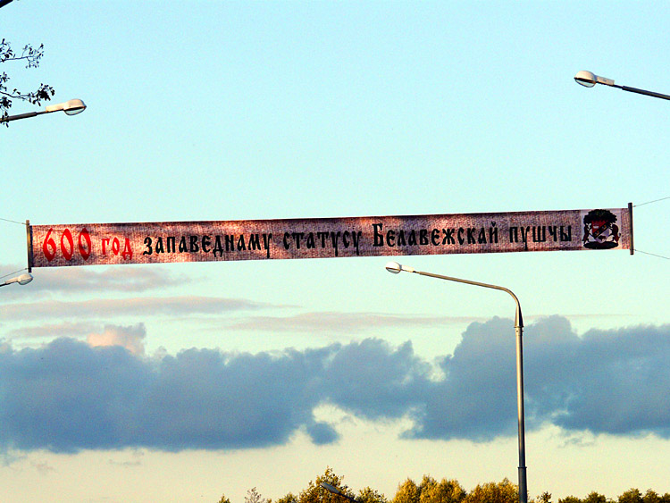 (Транспарант с надписью празднования 600-летия заповедного статуса Беловежской пущи, 2 октября 2009 г.) |