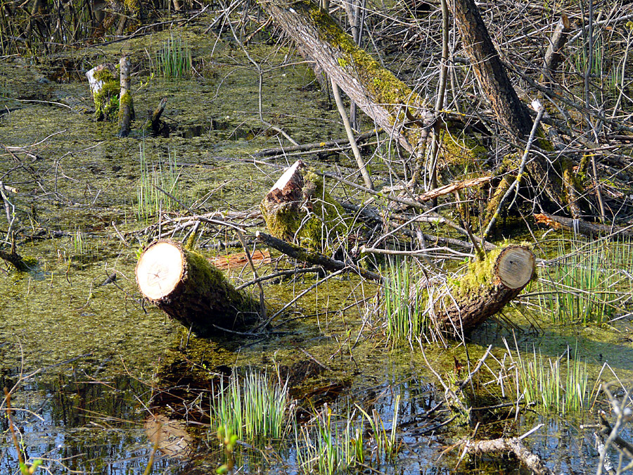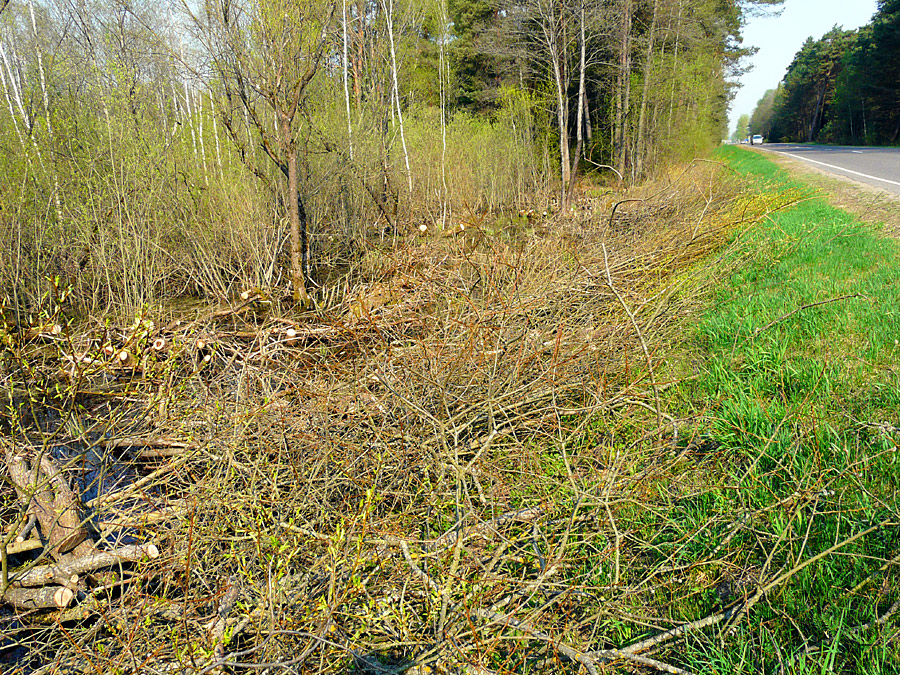 | (Вырубка ивы на заболоченных участках вдоль автомобильных дорог; ранняя весна 2011 г.) | ||