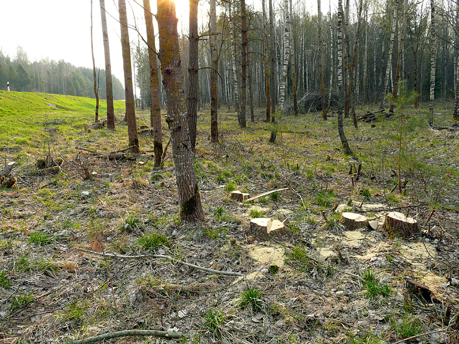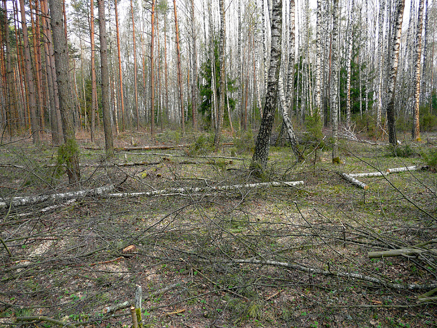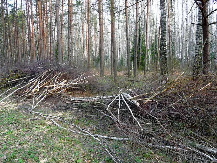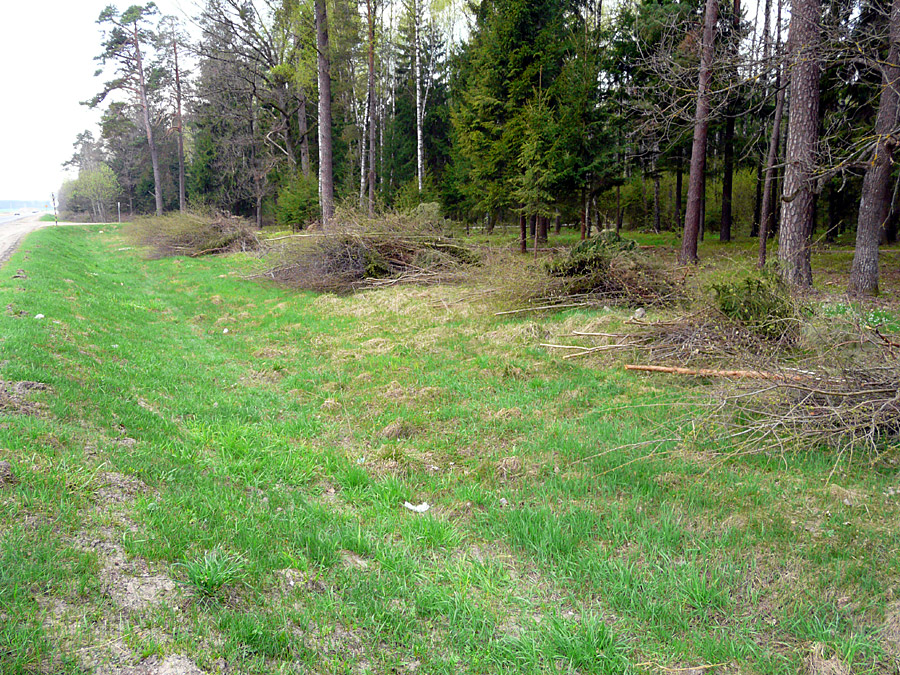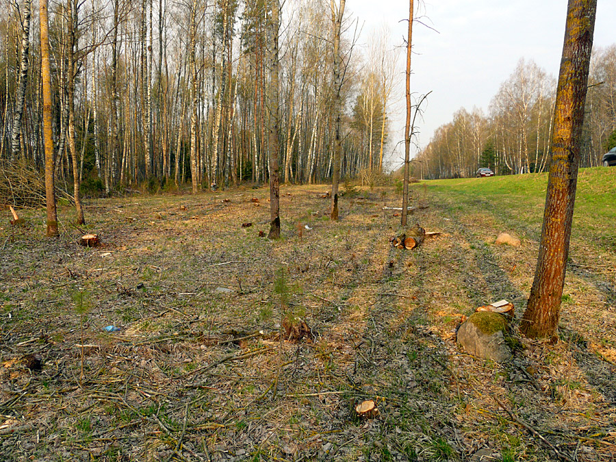| (Вырубленный хвойный лес на суходолах вдоль автомобильных дорог; весна 2011 г.) | |||