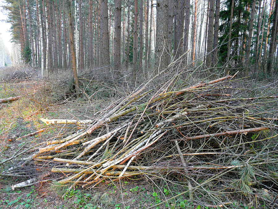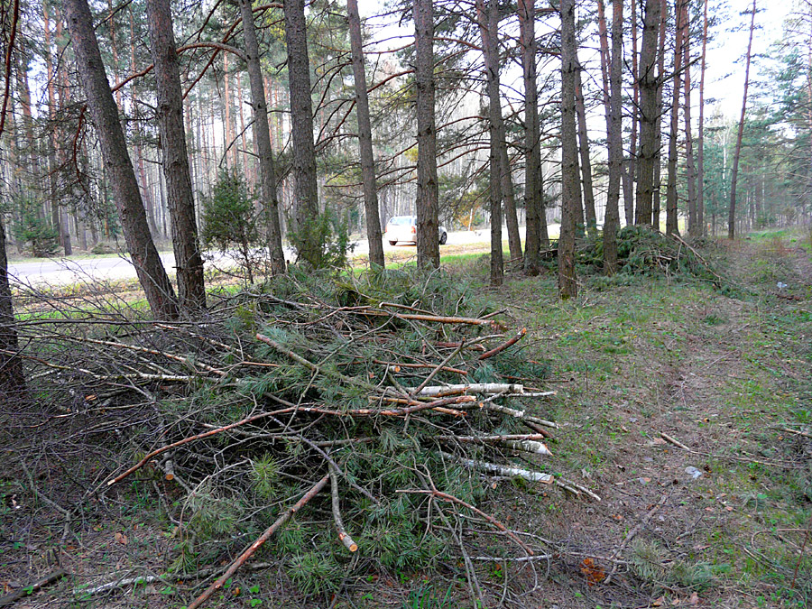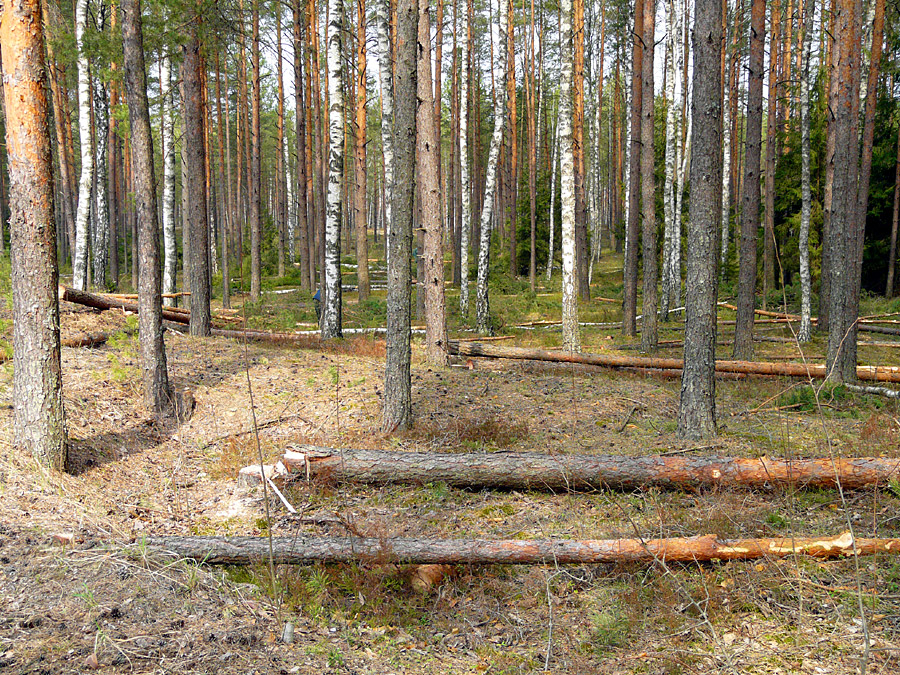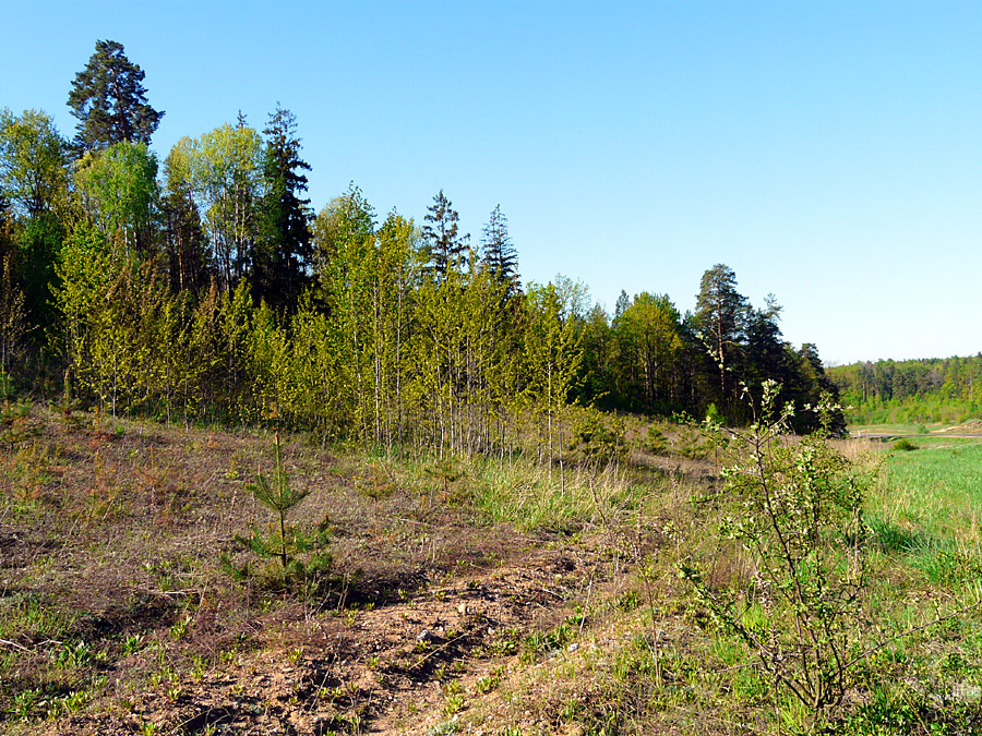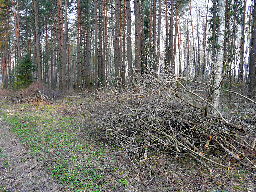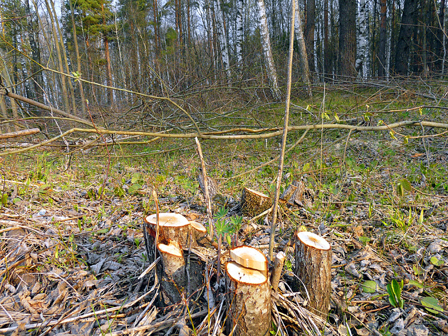 | (Вырубленный хвойный лес на суходолах вдоль автомобильных дорог; весна 2011 г.) | |||