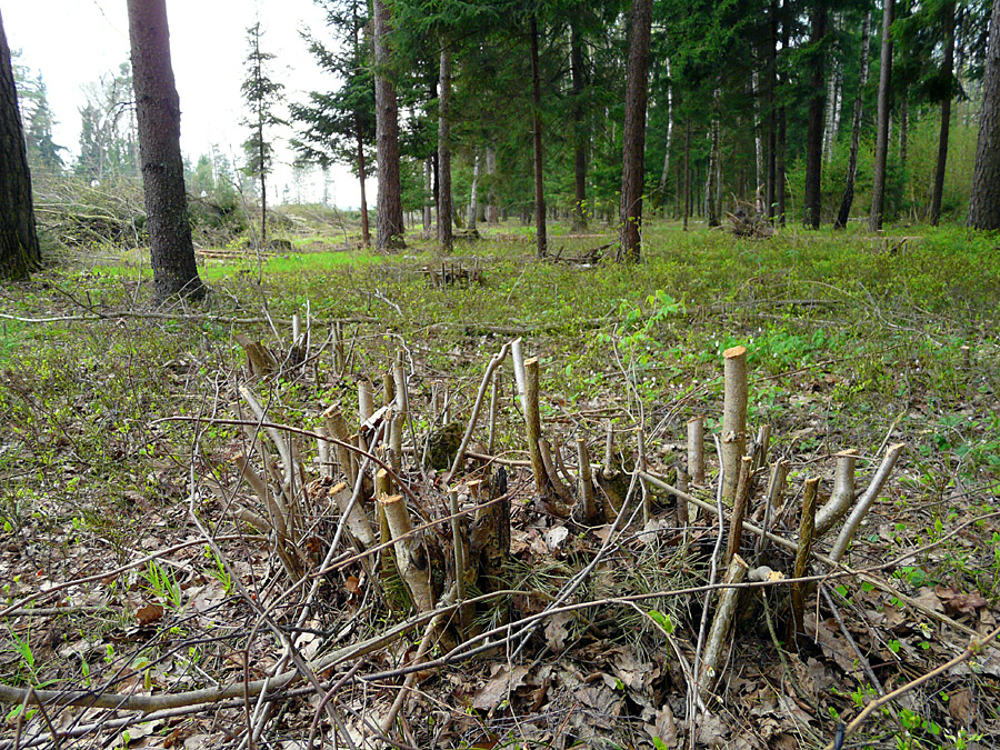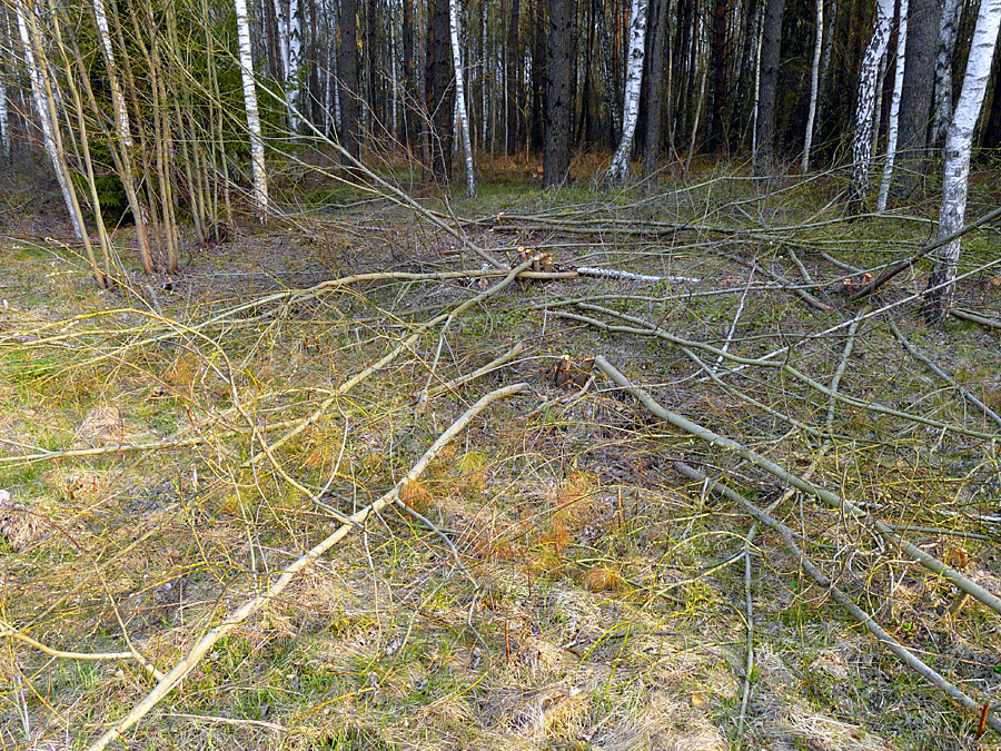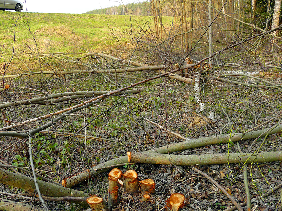 | (Вырубка в ольховом лесу, расположенном на удалении от автомобильной дороги; ранняя весна 2011 г.) | ||