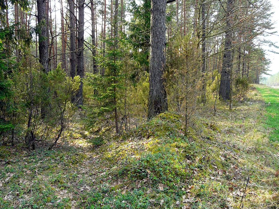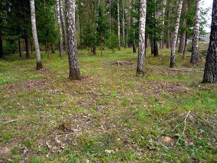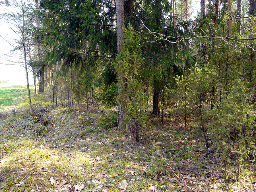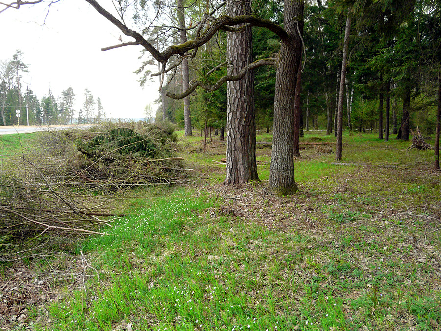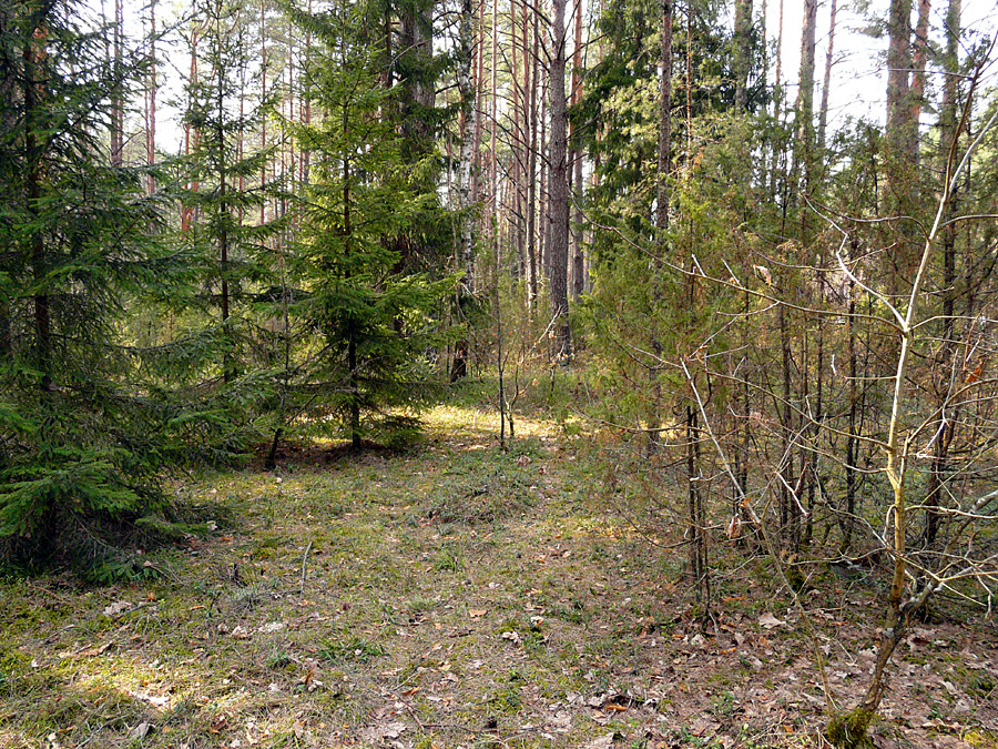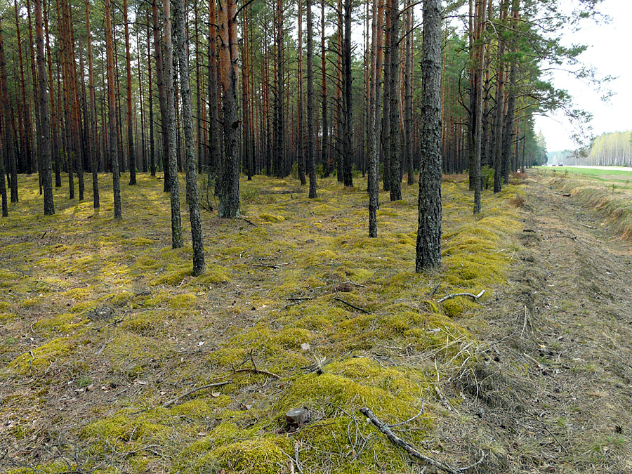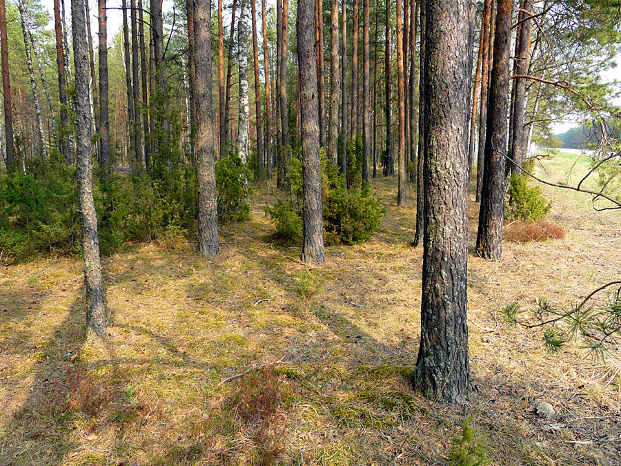 | (Естественный хвойный лес на суходолах вдоль автомобильных дорог; весна 2011 г.) | |||