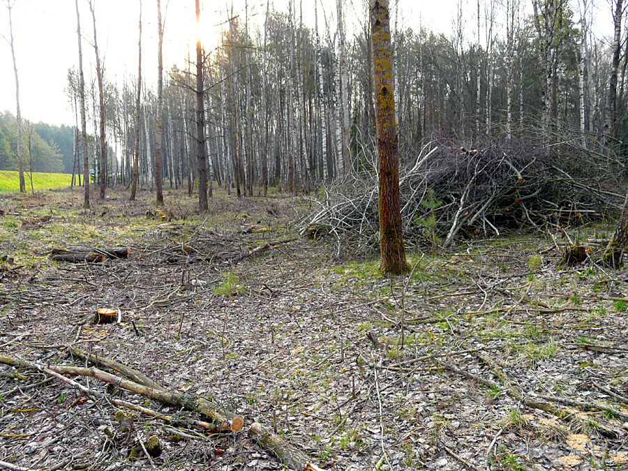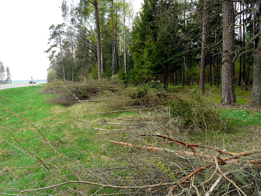 | (Вырубленный белорусский лес вдоль автомобильных дорог; весна 2011 г.) | |||