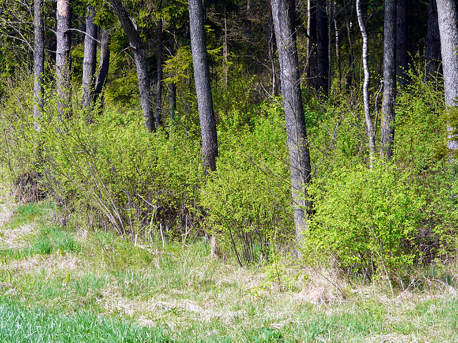 Так прекрасно выглядит белорусский лес весной возле автомобильных дорог в местах возле населенных пунктов.