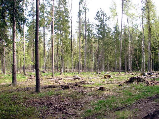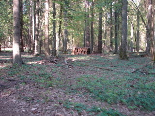 "И вот в дебрях не видных с больших дорог и стали попадаться первые вырубки. Чем глубже в лес тем чаще.Причём если местами было чётко видно,что срублены сухие поломанные деревья,то в других местах так-же чётко было видно что взяты в оборот нормальные строевые деревья. Особенно неравнодушны лесорубы к дубам. Так сказать-"выходили из избы здоровенные жлобы, порубили все дубы на гробы" (c) Высоцкий. "