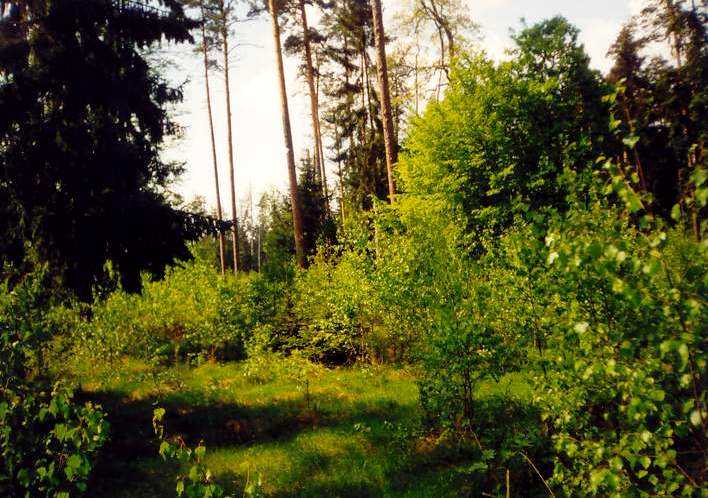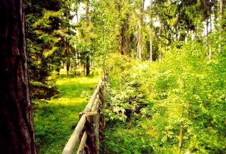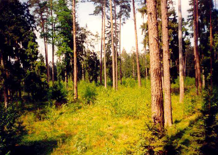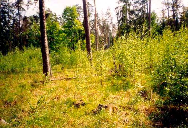 На снимках огороженные участки с молодым лесом на месте старых короедных очагов и лишенные подроста и подлеска неогороженные участки.