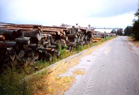 Эти и предыдущие снимки наглядно показывают возросшие объемы деревопереработки, организованные в последнее время в Беловежской пуще. Добавьте сюда горы бревен, сложенные вокруг основных складских линий, а также многочисленные штабеля из дерева, лежащие в самой Беловежской пуще, и Вы представите себе, сколько древесины заготавливается в Первобытном лесу и какую угрозу эта деятельность представляет для Беловежской пущи. Но самое удивительное, что даже такая гигантская деревоперерабатывающая деятельность не решила основной экономической проблемы Беловежской пущи возврата миллионных в долларовом эквиваленте кредитов. И где же выход?