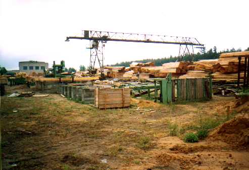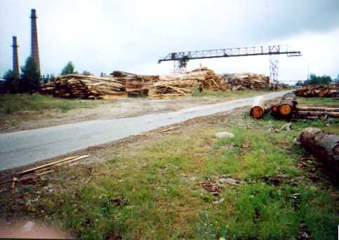 На снимке так выглядела территория лесозавода в 2001 году. Объемы переработки древесины были еще умеренные. Распиленная древесина вовремя реализовывалась.