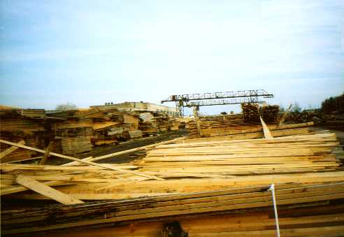На снимках, сделанных год спустя после предыдущей съемки, видно, что на месте небольших запасов досок (2001 год) выросли «горы» пиломатериалов (2002 год). Не удовлетворительно поставленная работа по реализации пиломатериалов привела к тому, что от длительного хранения на открытом воздухе он начал чернеть и гнить, снижая товарное качество.