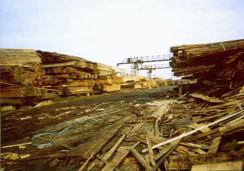 Постепенно древесиной настолько завалили территорию, что ее уже негде было складировать. Поэтому начали сгружать привезенную древесину беспорядочно по всей территории лесозавода.