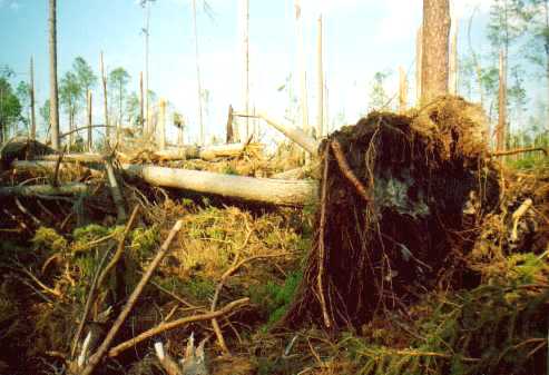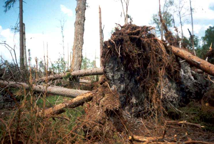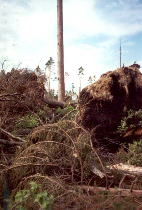 Столетние огромные ели выворачивало с корнем. Многие деревья падали так,