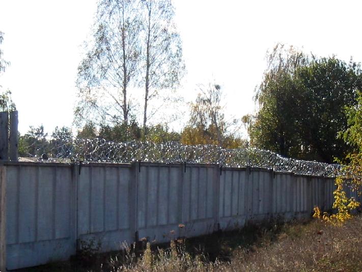 На этих снимках показана колючая проволока, которую натянули поверх бетонного забора со стороны деревни Каменюки. Раньше, при прежних администрациях, вход на промышленную территорию был свободным и никто ничего не боялся. Какие же секреты так тщательно скрывают сегодня от постороннего глаза? Не эти ли безобразия, что показаны выше? А может быть экономический хаос, для скрытия которого периодически создается видимость всеобщего благополучия и показуха для руководящих работников во время образцово-показательных семинаров?Далее: Экспорт древесины за границу
