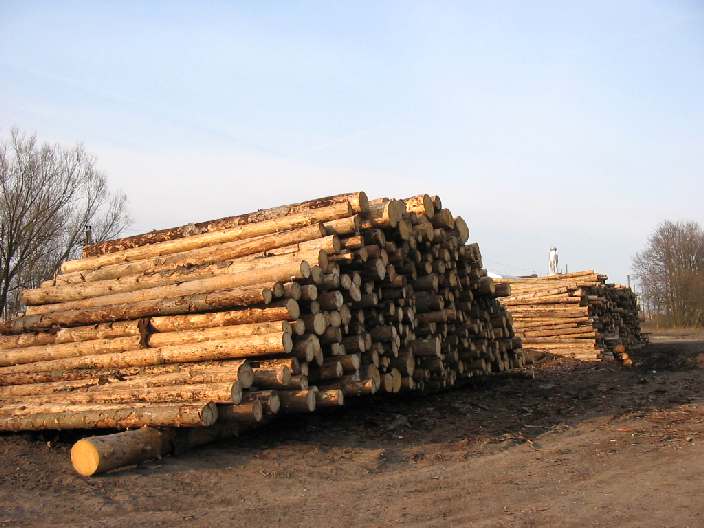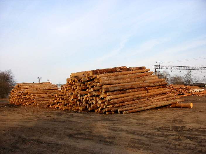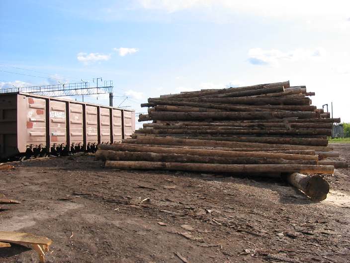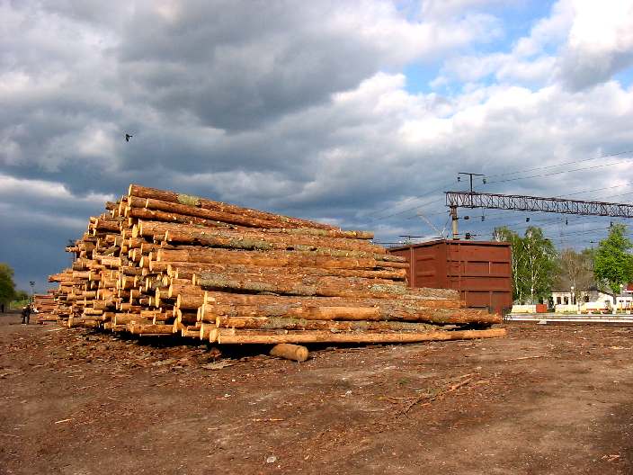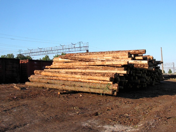 На этих снимках показаны штабеля еловой древесины на погрузочной платформе железнодорожной станция "Жабинка" летом 2005 г., ожидающие своей очереди на погрузку в железнодорожные вагоны.