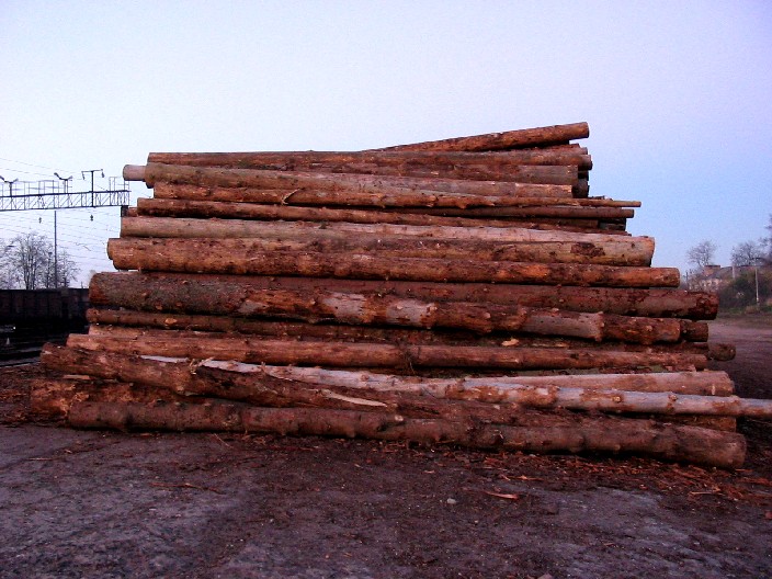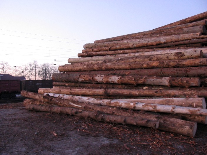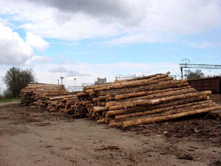 На этих снимках показаны штабеля еловой древесины на погрузочной платформе железнодорожной станция "Жабинка" осенью 2005 г., ожидающие своей очереди на погрузку в железнодорожные вагоны.
