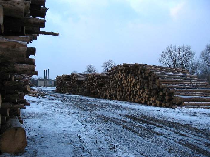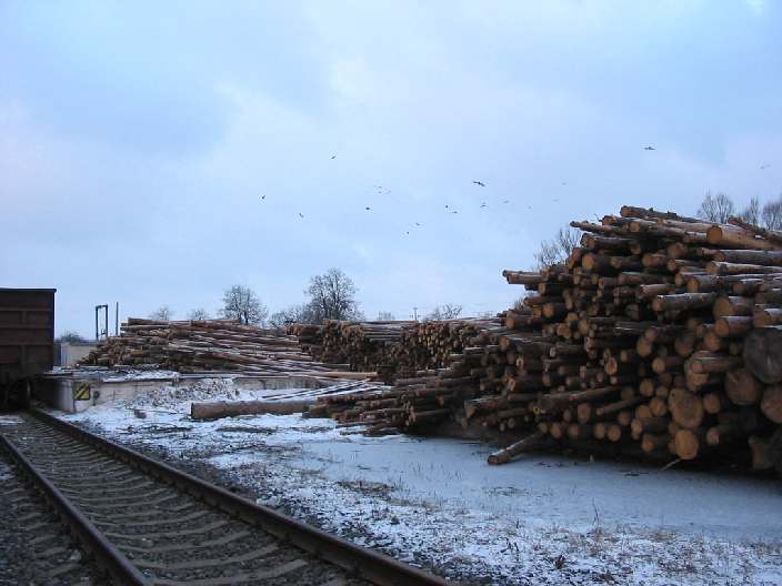 На этих снимках показаны штабеля еловой древесины на погрузочной платформе железнодорожной станция "Жабинка" зимой 2005 г., ожидающие своей очереди на погрузку в железнодорожные вагоны.