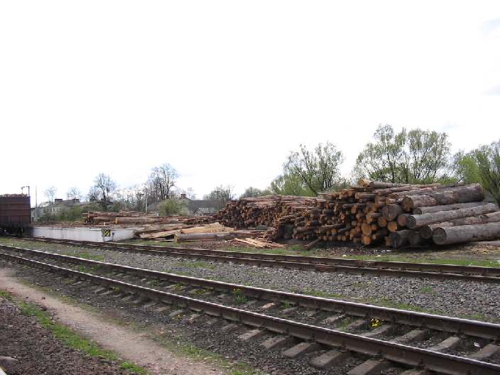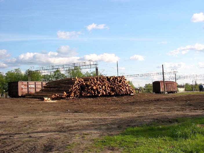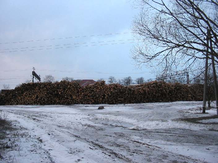 Здесь показаны штабеля еловой древесины на погрузочной платформе железнодорожной станция "Жабинка" в апреле 2005 г.