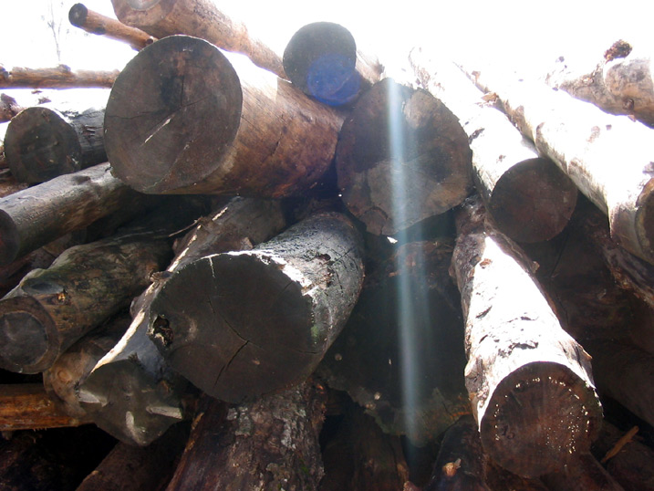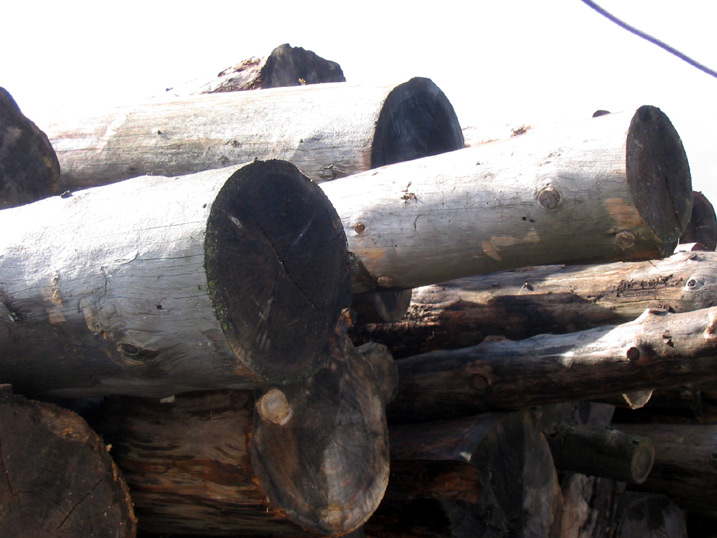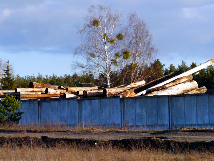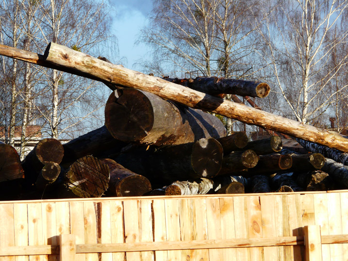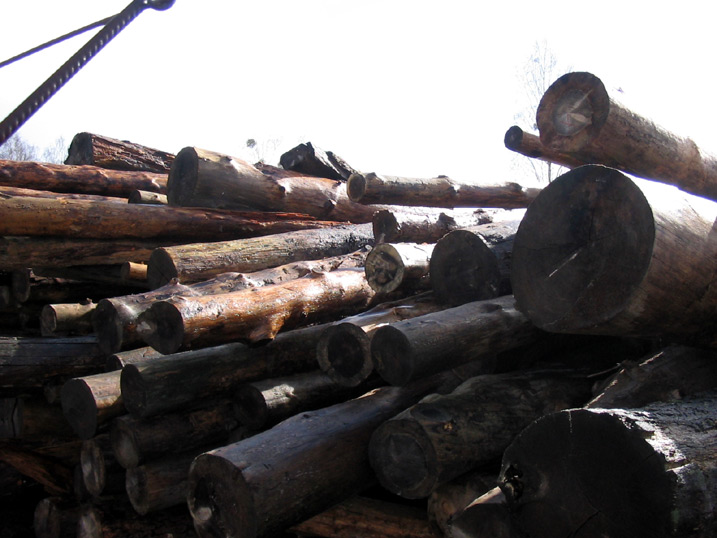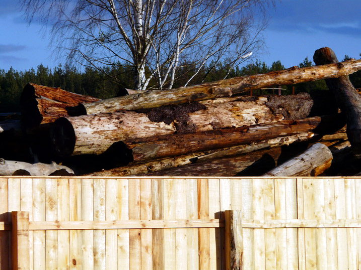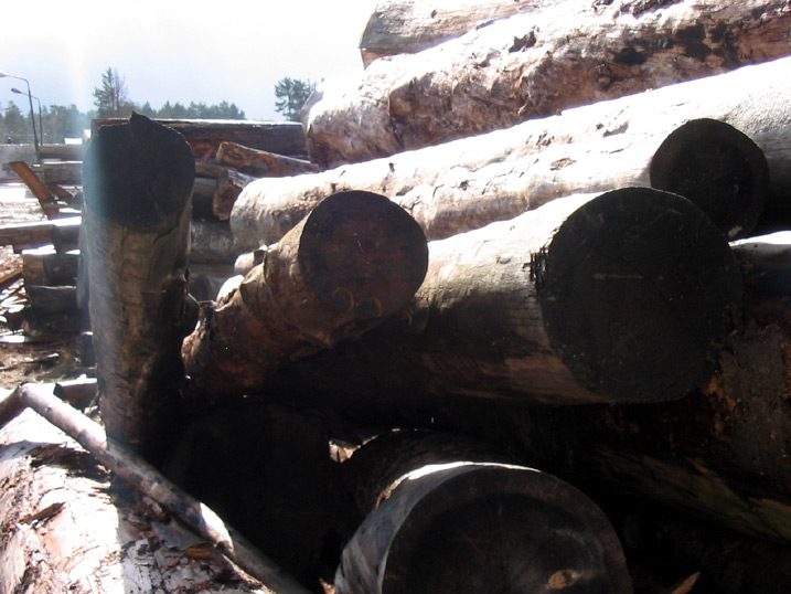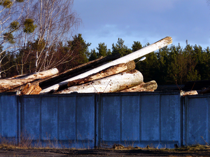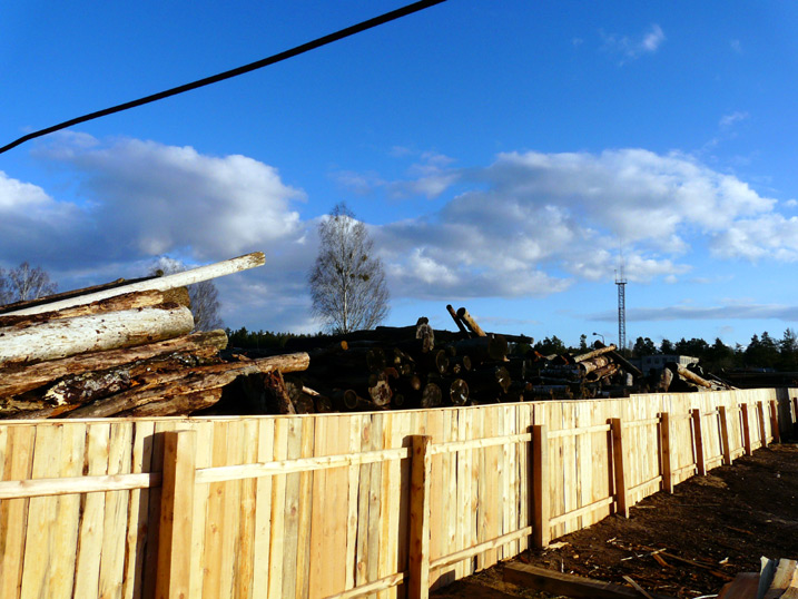 | (Бревна за бетонным забором на северной стороне лесозавода, 2 марта 2008 г.) |