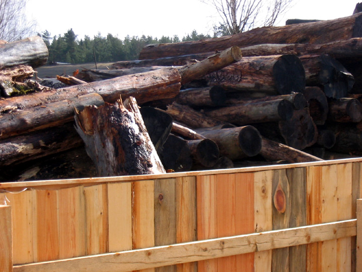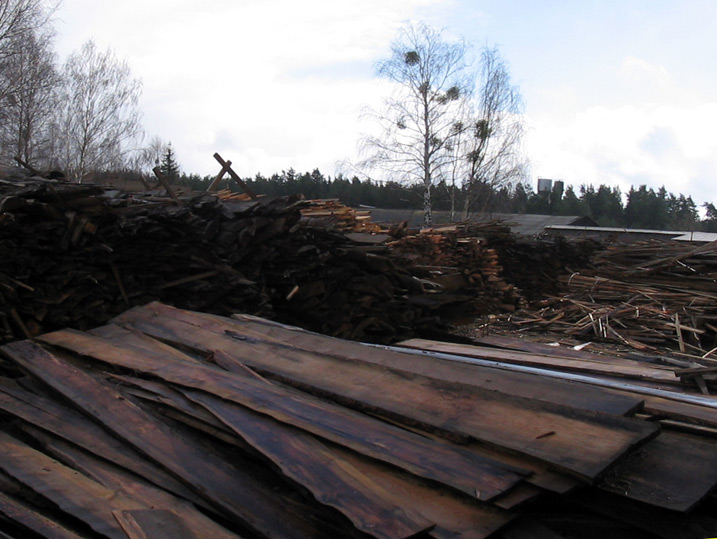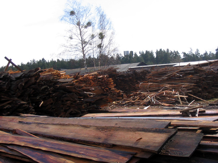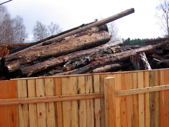 | (Полусгнившая древесина за забором на северной стороне лесозавода, 15 марта 2008 г.) |