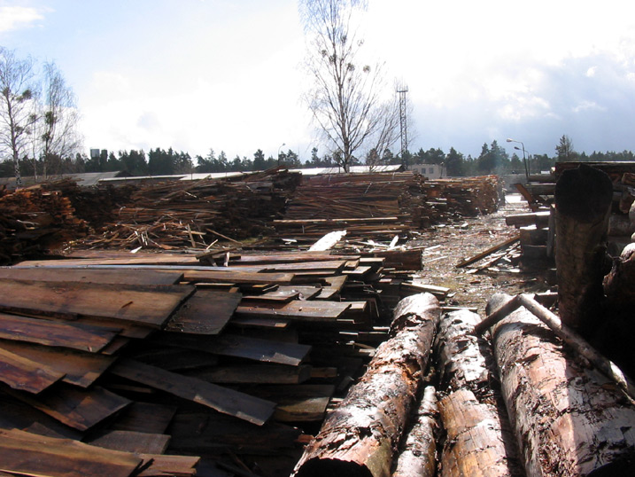 События, факты, документы и свидетельства: Так выглядели склады свеже завезенной древесины на очищенной от гнили южной стороне лесозавода в начале 2008 года.