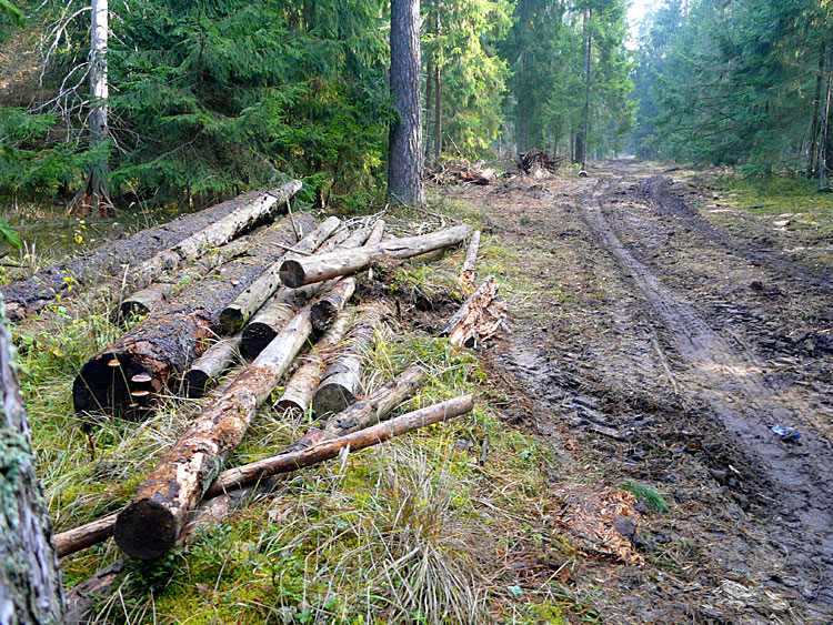 Рубки и вывоз древесины ведутся круглогодично. Поэтому в дождливые сезоны лесные просеки во многих местах разбиты тяжелогрузными лесовозами.