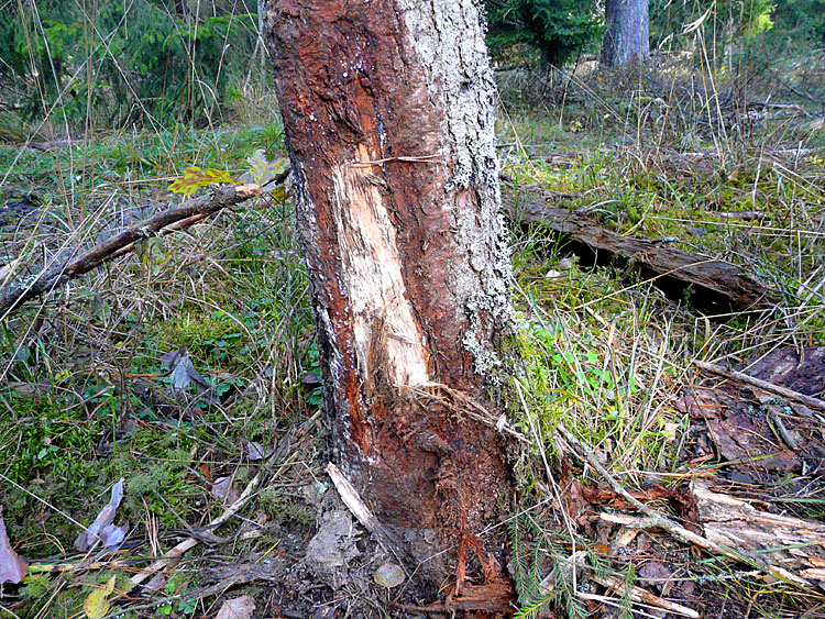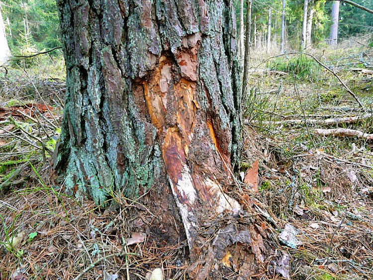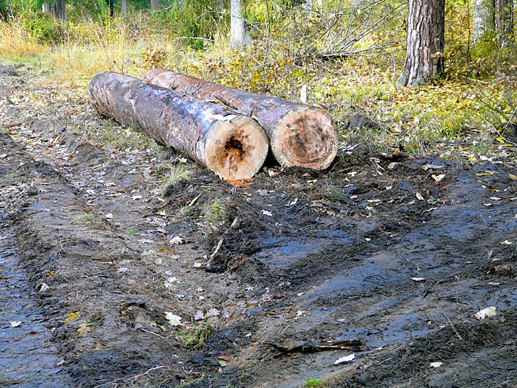 | (Поврежденная кора деревьев после трелевки бревен, квартал 826, 30 октября 2010 г.) | ||