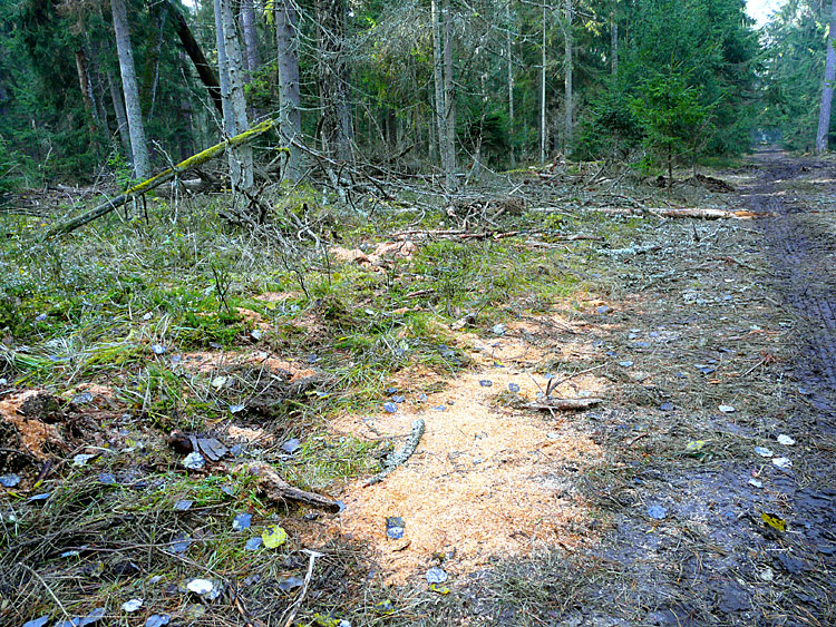 | (Пни и опилки после рубок, квартал 826, 30 октября 2010 г.) | |||