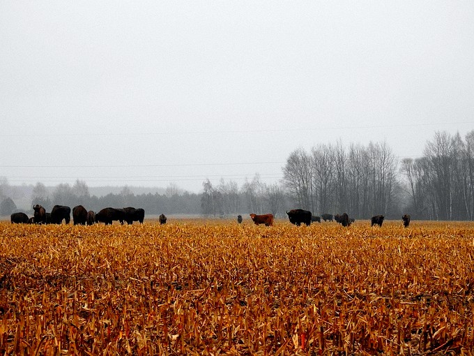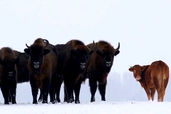Корову среди зубров в 10 километрах от Беловежской пущи заметил польский орнитолог и натуралист Адам Збырыт. Это было еще в начале ноября.