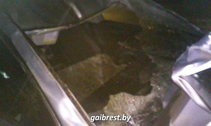 Зубренок весит больше 100 кг - он полностью вынес лобовое стекло машины. Фото: gaibrest.by