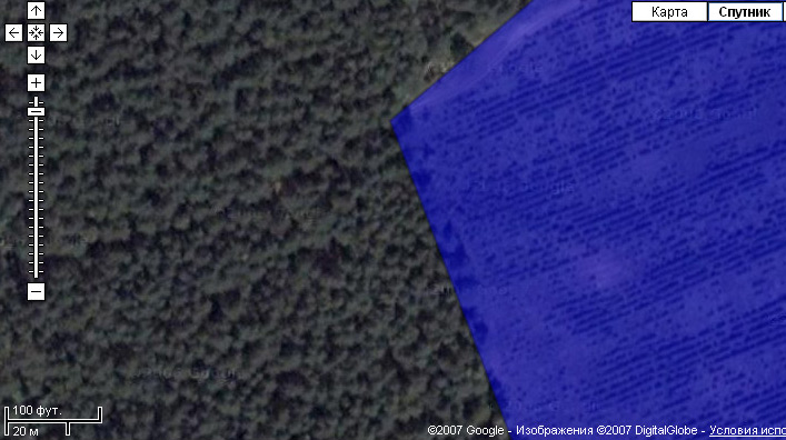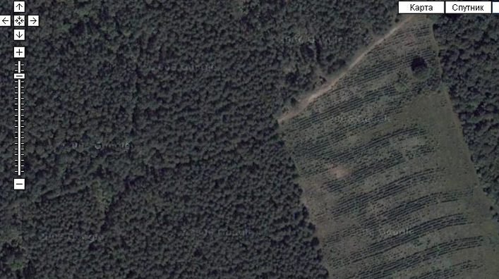 Maps-Google. Видите лес рядочками? Это искусственные посадки, которые создает некомпетентный временщик, а по совместительству еще и генеральный директор Национального парка "Беловежская пуща" Николай Бамбиза. А вокруг – дикий первобытный заповедный лес. Вот таким образом Н.Н. Бамбиза этот первобытный лес уничтожает, сначала превращая его в бревна и доски, а потом искусственно засаживая вырубки в рядочки. Уничтожает Мировое наследие, национальную святыню, возведя это в ранг государственной политики!