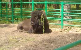 Беловежской Пуще, расположенной на границе Белоруссии и Польши. Там сохранилось последнее вольное стадо европейского зубра. И те зубры, которых мы везем сейчас сюда, имеют в своих корнях происхождение из