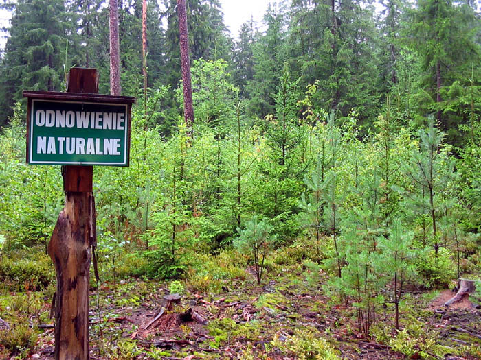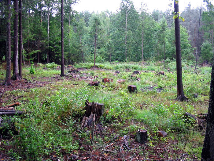 | Участок за границами национального парка, на котором идет естественное возобновление леса после вырубки. |