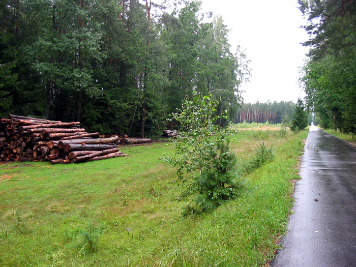 Иногда белорусским велотуристам встречались штабеля древесины, лежащие прямо на туристическом маршруте. |