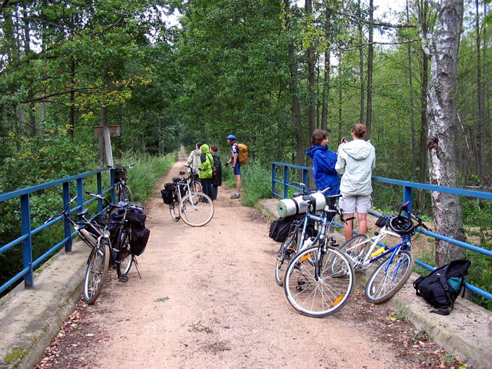 | 11 августа 4 группы велотуристов выехали с юга, запада, севера и востока Беловежской пущи и 12 августа должны встретиться в центре пущи, в польском поселке Беловежа. Белорусскую группу по пути следования до государственной границы (15 км) постоянно сопровождали пни и вырубки в белорусской части Беловежской пущи. |