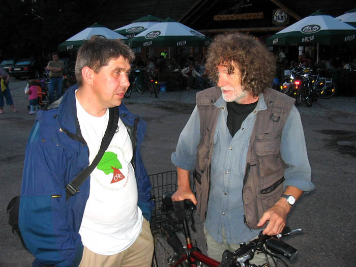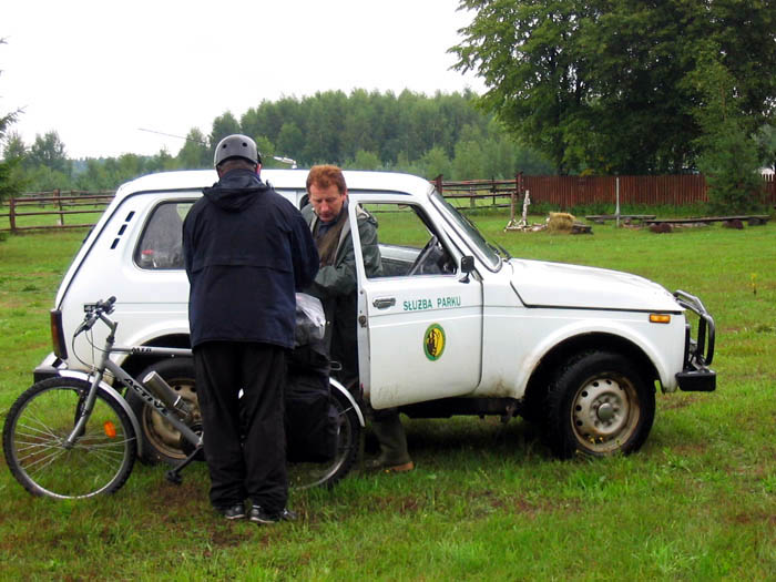 Польский организатор велотура Стефан Якимук (WWF, Польша) и местный активист в защиту Беловежской пущи Януш Корбель (справа). |