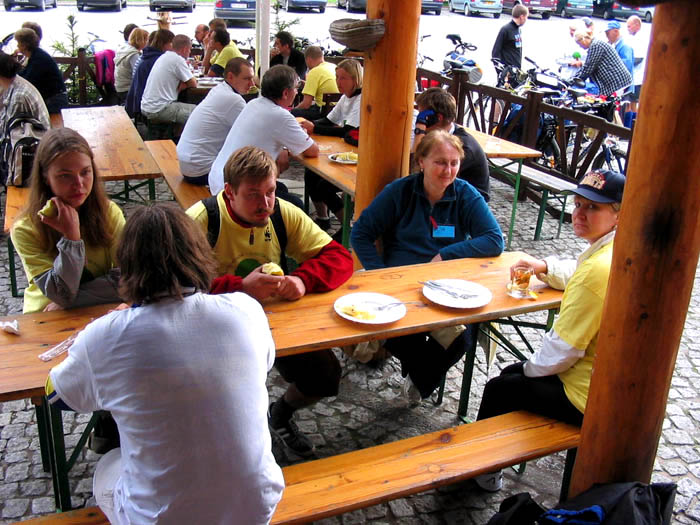 Ужин белорусской группы в кафе на открытом воздухе. |