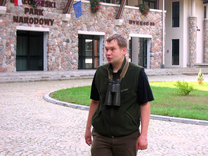 | В Беловеже. Веселый польский турист в ожидании ужина. |