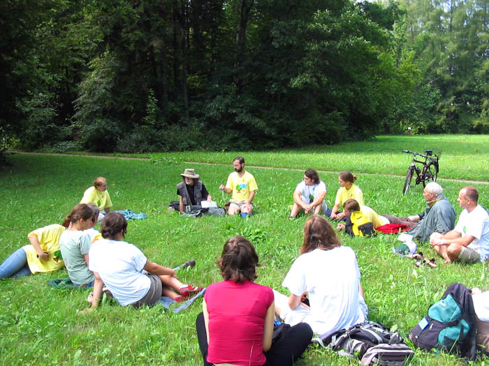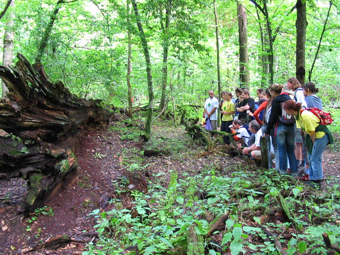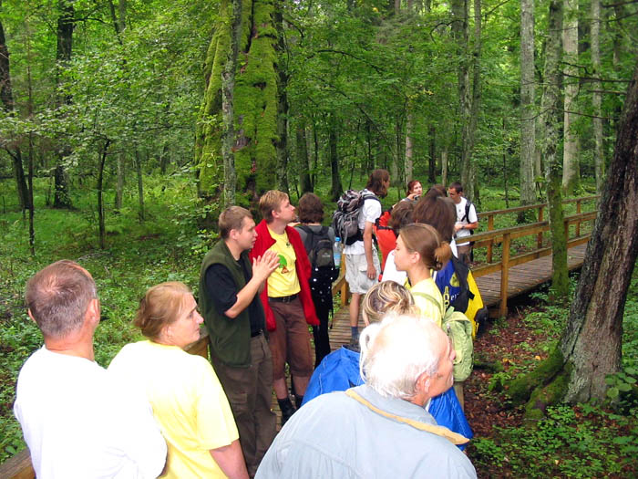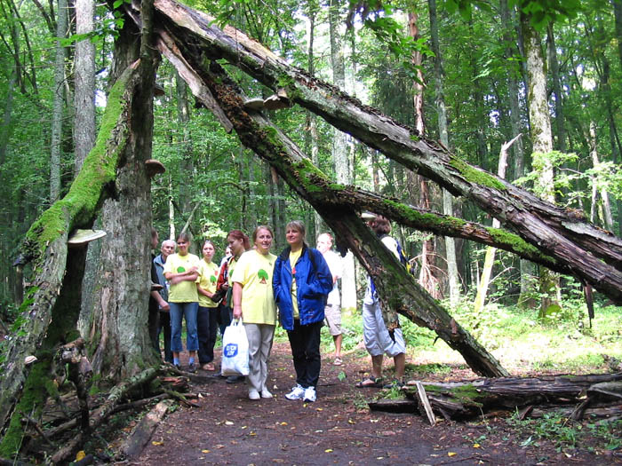 Белорусские туристы слушают очередную историю из жизни заповедного леса. |