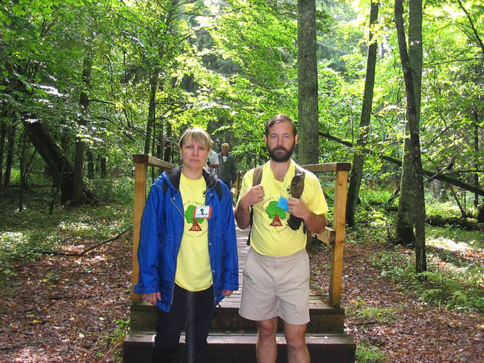 | Белорусские участники Татьяна и Георгий Козулько в заповедном лесу. |