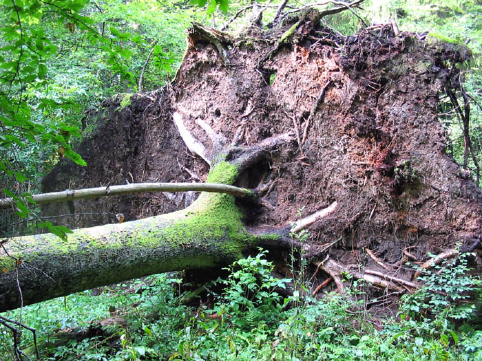 | Удивительные формы дикого Беловежского леса: старый еловый выворотень. |