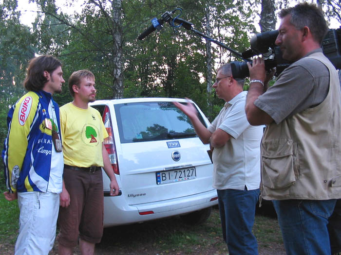 Интервью польскому телевидению дают белорусские велотуристы Святослав Волосюк (справа) и Сергей Сидорук (г. Брест). |