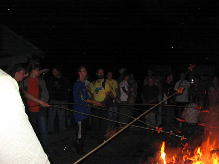 | Окончание велопробега. Вечернее «огниско» заканчивается традиционным для поляков обжариванием колбасок на костре. |