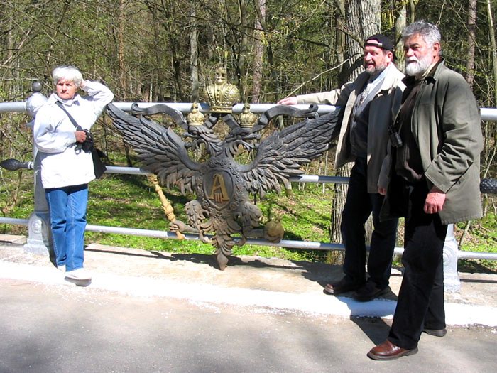 | На дороге, называемой бывший царский тракт, недавно установили двуглавых орлов - гербы Российской царской империи, которые были здесь 100 лет назад во время правления царя Николая Второго. |